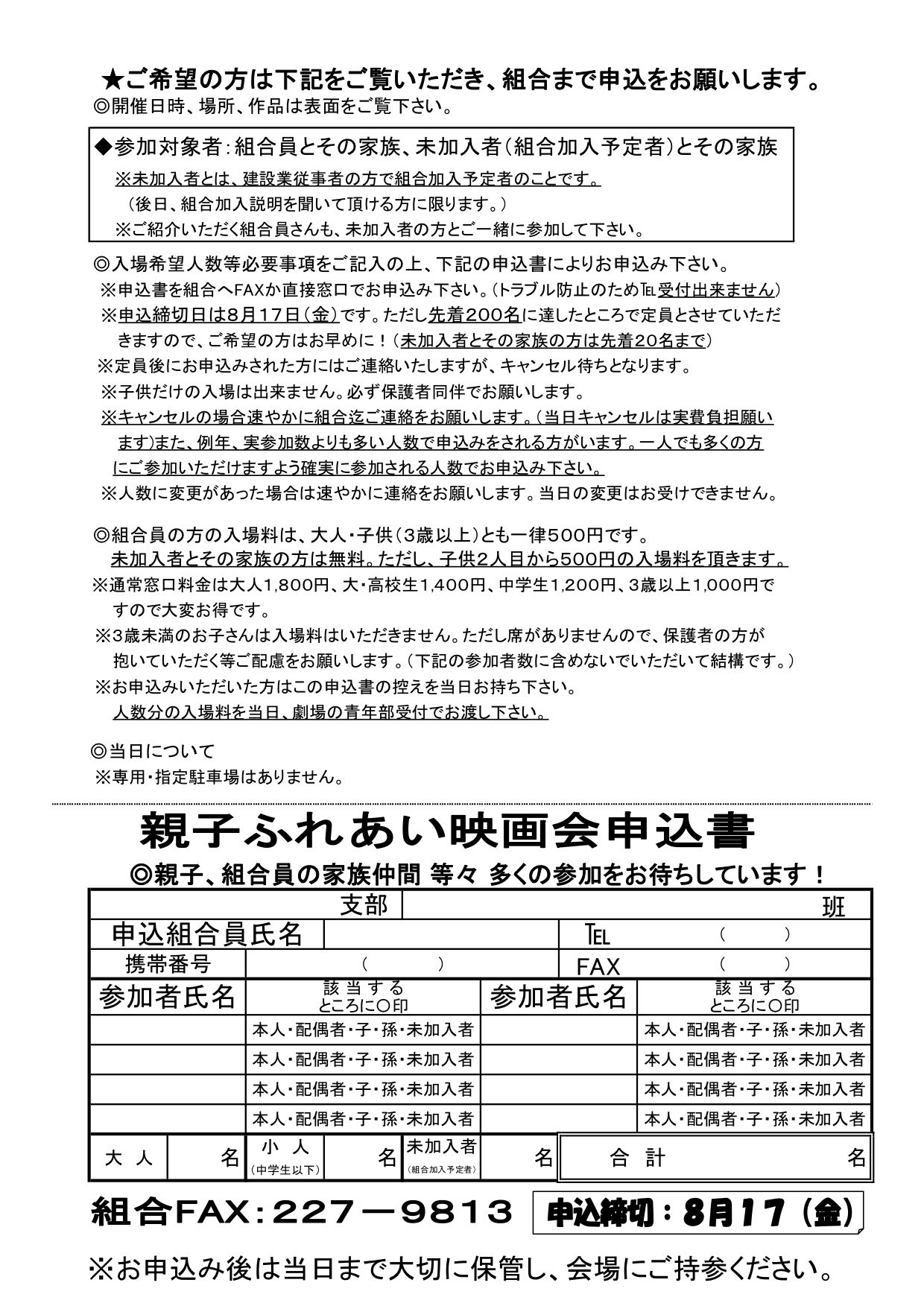 青年部主催 親子映画上映会 参加者募集チラシダウンロード→こちらをクリック
